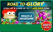 - Road to Glory Pack (1,920,000 gems once reached Level 50 - one time purchase) via PayPal $24.99