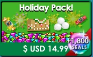 - Holiday Pack (450,000 gems, 2 Deluxe Winterfest Crackers, 25 Winterfest Crackers, 5 Snowballs, 1 Gingerbread Sweater, and 1,800 Royal Winter Seals for the price of 14.99 USD) available only during WinterFest.