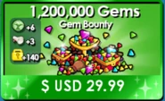- Monthly Bundle (200,000 gems & 1,200 Seasonal Tokens & a Growmoji ) via PayPal $29.99