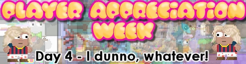 August 14th: PLAYER APPRECIATION WEEK STARTS! Crashes, rollbacks, password phishing, bot spam, drop games, autoruns, fake giveaways... you've been through a lot. Thank you for sticking through it all continuing to make Growtopia a strange and wonderful place to share creativity and friendship. - @Seth and @Hamumu |